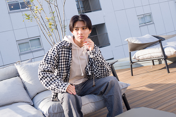 透明感あふれる爽やかな笑顔が印象的な榎本司さん。カメラの前ではふと大人びた表情を見せる瞬間も。仕事にまっすぐ向き合う真摯さと芯の強さ、そして少年から青年期を迎える等身大の輝きをひしひしと感じる取材でした。これからも多くの作品を通じて、様々な顔を見せてくれるでしょう。