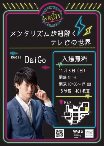 「早稲田祭2015」11/8(日) WASTV:ゲストDaiGo