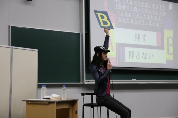 ちなみに100万円のボタンは「押さない」方が栗原さんを含め圧倒的多数でした。「知らない人といっても、自分が知らないだけで“自分の大切な人にとっての大切な人”かもしれないので、ボタンは押しません」と語る栗原さんのイケメンぶりに会場も「なるほど〜」と納得の溜息。知らない人なら押しちゃうな~と一瞬でも思ってしまった筆者、自分の欲に反省です……。