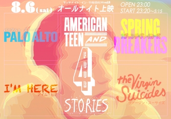 【早稲田松竹】08/06(土)オールナイト上映「パロアルト・ストーリー」「スプリング・ブレイカーズ」「アイム・ヒア」「ヴァージン・スーサイズ」
