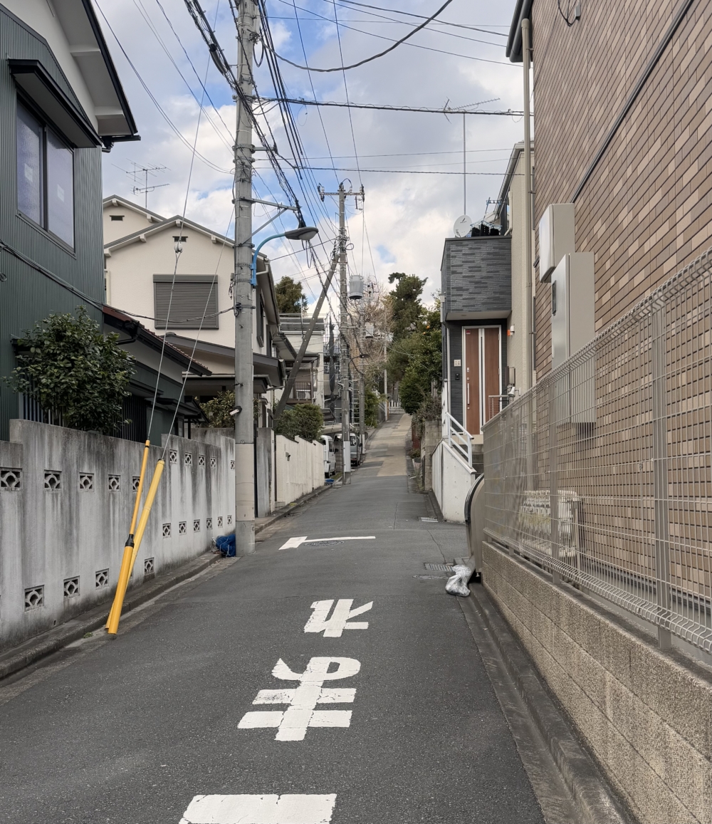 山手通りから10分ほど歩き、聖母坂に着きました。これまでのように住宅の間をひっそりと通る坂道とは違い、道幅も大きく堂々としています!